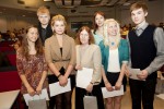 Fotol on konkursi parimad õpilased Tiigrihüppe õpilaskonkursside lõpuüritusel 25. mail Tallinna Tehnikaülikoolis. Pildilt on puudu Romek Taldrik, Timo Arbeiter ja Pille Olesk. Pildistas Terje Lepp.