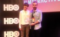 Dagmar Mäe ja Tõnis Vassar Lodzis festivalil "Filmteractive" auhinda vastu võtmas. Oktoober 2013. Foto erakogust.