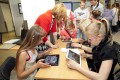 Õpilased tutvumas tahvelarvuti võimalustega. Pilt on tehtud HITSA Innovatsioonikeskuse korraldatud Ideelaadal maikuus 2013. Autor: Terje Lepp.
