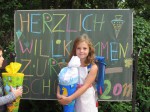 Minou läks 16. augustil Altrahlstedti Grundschulesse (Alt – vana, Rahlstedt – linnaosa, kus Minou pere elab, Grundschule – algkool. Toimetaja märkus). Kell 9.00 algas lastele ning vanematele kirikus jumalateenistus ning sellele järgnes kell 10.00 pidulik aktus, kus lapsed klasside järgi lavale kutsuti, et siis koos õpetajaga oma klassi minna. Minou klassis on 23 õpilast, mis on siin lubatud klassi suurus. Koolitunnid kestavad siingi 45 minutit ning peale tutvustustundi oli kooliõuel pildistamine ning sellega esimene koolipäev lõppeski. Kui Eestis tuuakse õpetajale esimesel koolipäeval lilli, siis siin sellist kommet ei ole. Tähtis on hoopis, et igal lapsel oleks Schultüte (koolituutu), mida iga vanem ise oma lapsele enne kooli algust teeb ning kus sees on kingitused esimeseks koolipäevaks.”