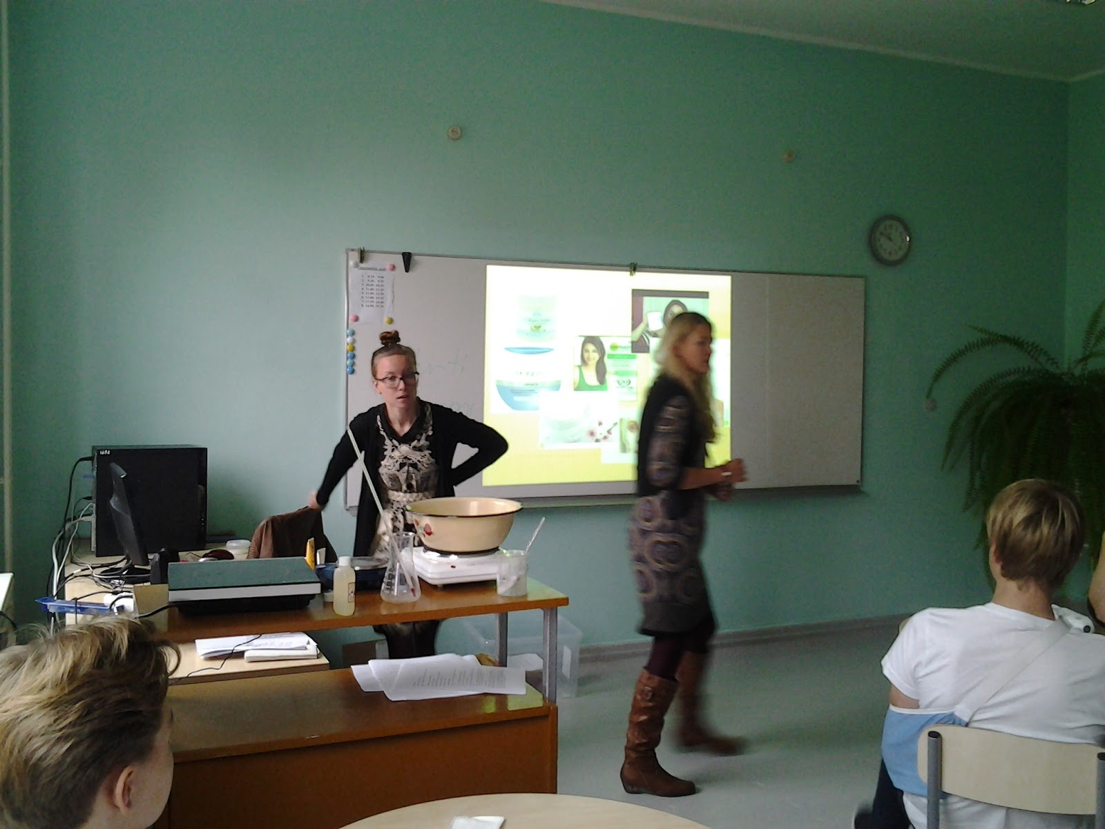 Bioloogia- ja keemia-tehnoloogia õpitoas toimus Kerti Aida ja Tormi Kotka juhendamisel kreemi valmistamine. Töötuba algas teoreetiliste selgitustega emulgaatoritest, säilitusainetest, E-vitamiinidest, veest ja taimsetest õlidest. Kreemi tegemisel rakendasid õpilased oma käelisi oskusi ja loogilist mõtlemist.