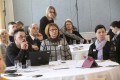 HITSA ProgeTiigri programmijuht Kristi Rahn alustas samuti praktilise koostööga: iga laudkond pidi ette antud numbritest kokku panema võimalikult väikese arvu. Sellestki väikesest ülesandest tulid kohe välja koostöö keerulised kohad, positiivne pool ja need probleemid, millega õpetaja klassis rühmatööd tehes kokku puutub.