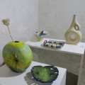 Näitusel saab näha igas suuruses, värvis ja erinevatel teemadel kujusid, nõusid, serviise, reljeefe. Ka kasutatud tehnikad on mitmekülgsed - kleepvormid, glasuuritud esemed, maalitud esemed, treitud vormid, segatehnikad.
