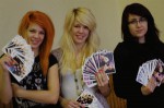 Fotol Ingrida ja Kristina Pjatkovskaja ja Rebekka Lilleleht trükisoojade postkaartidega.